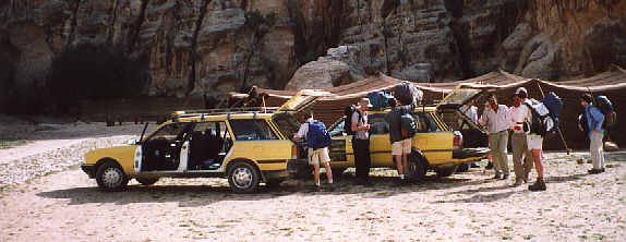 Réveil par l'appel à la prière, 1h avant le lever du soleil, puis au lever du soleil. Le sac de Marie-Pierre a été retrouvé, une voiture passe à l'aéroport tandis que l'autre part vers le premier site à visiter. On a deux Peugeot 505 break jaunes qui affichent 300000 km au compteur.