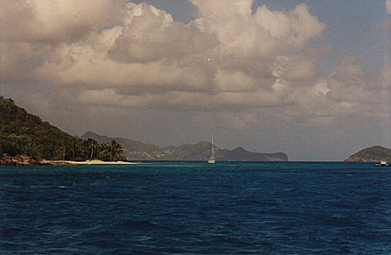 Le lendemain matin, nous reprenons notre route vers Union. Nous avons dérivé pendant la nuit (inconvénent de la cape), et nous passons la matinée à rejoindre Union au près serré. L'entrée du port de Clifton à la voile ne pose pas de problème, mais il y a plus d'eau que prévu à l'endroit où nous mouillons, et l'ancre dérape. Heureusement, Jacky a le bon réflexe (rallonger le mouillage).